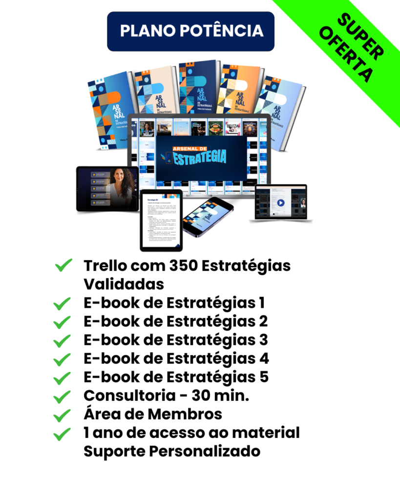 Foi então que decidi criar o Arsenal de Estratégias, um conjunto de 350 estratégias testadas e aprovadas, prontas para serem aplicadas.